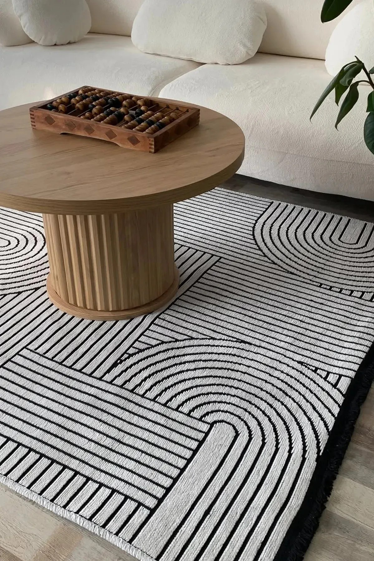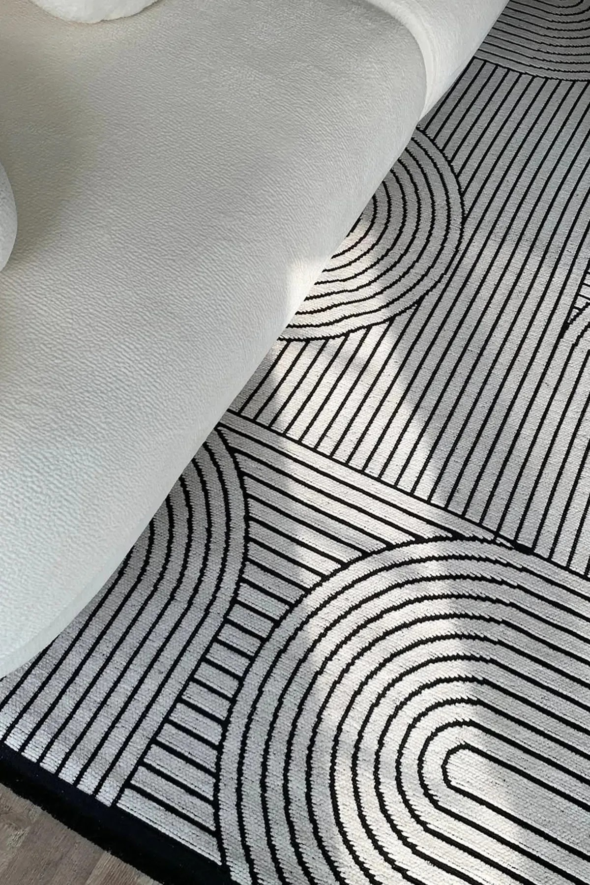Akça Modern Tasarım Yıkanabilir Dokuma Kaymaz Taban Halı Yolluk Kilim Beyaz