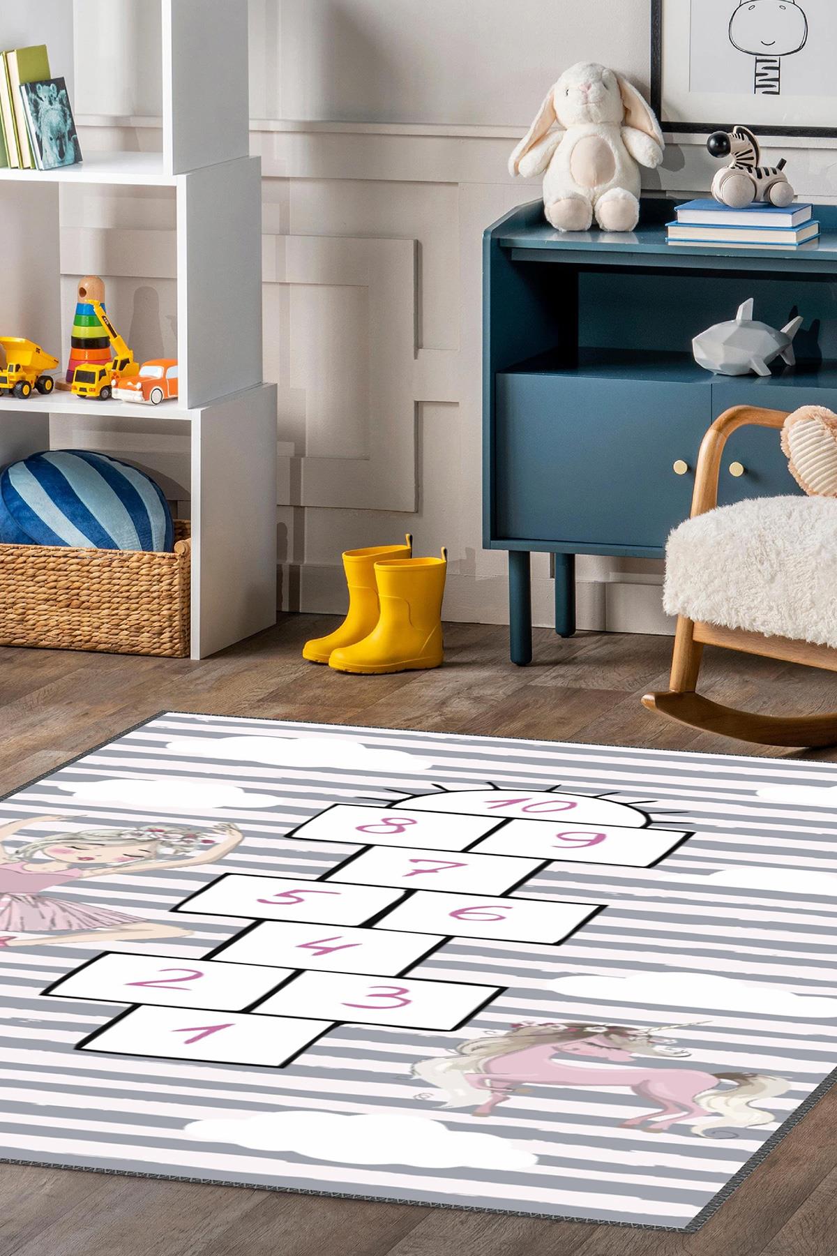 Kaymaz Tabanlı Makinede Yıkanabilir Çocuk Halısı