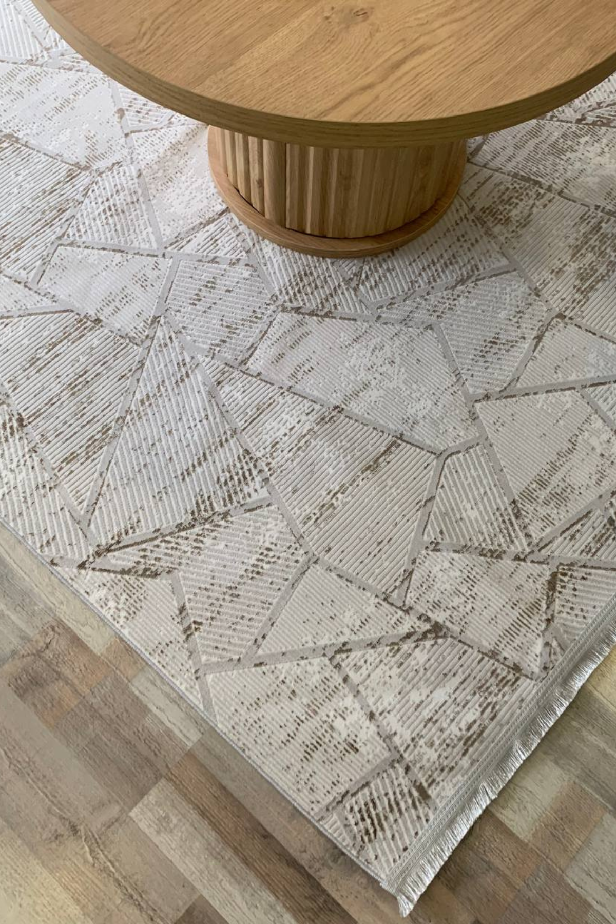 Herat HR111 halı yolluk modeli, kahverenginin zarif tonlarıyla yaşam alanlarınıza sıcak ve doğal bir atmosfer kazandırır. Modern çizgilerle dokunan bu halı, hem görsel estetik hem de pratik kullanım arayanlar için ideal bir tercihtir.