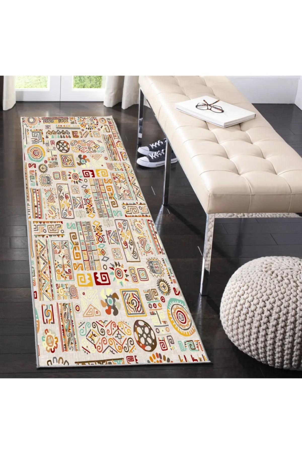 Quastro Modern Desen Kaymaz Taban Salon - Oturma Odası Halısı , Yolluk (KSdot-yllk-1138colorful)