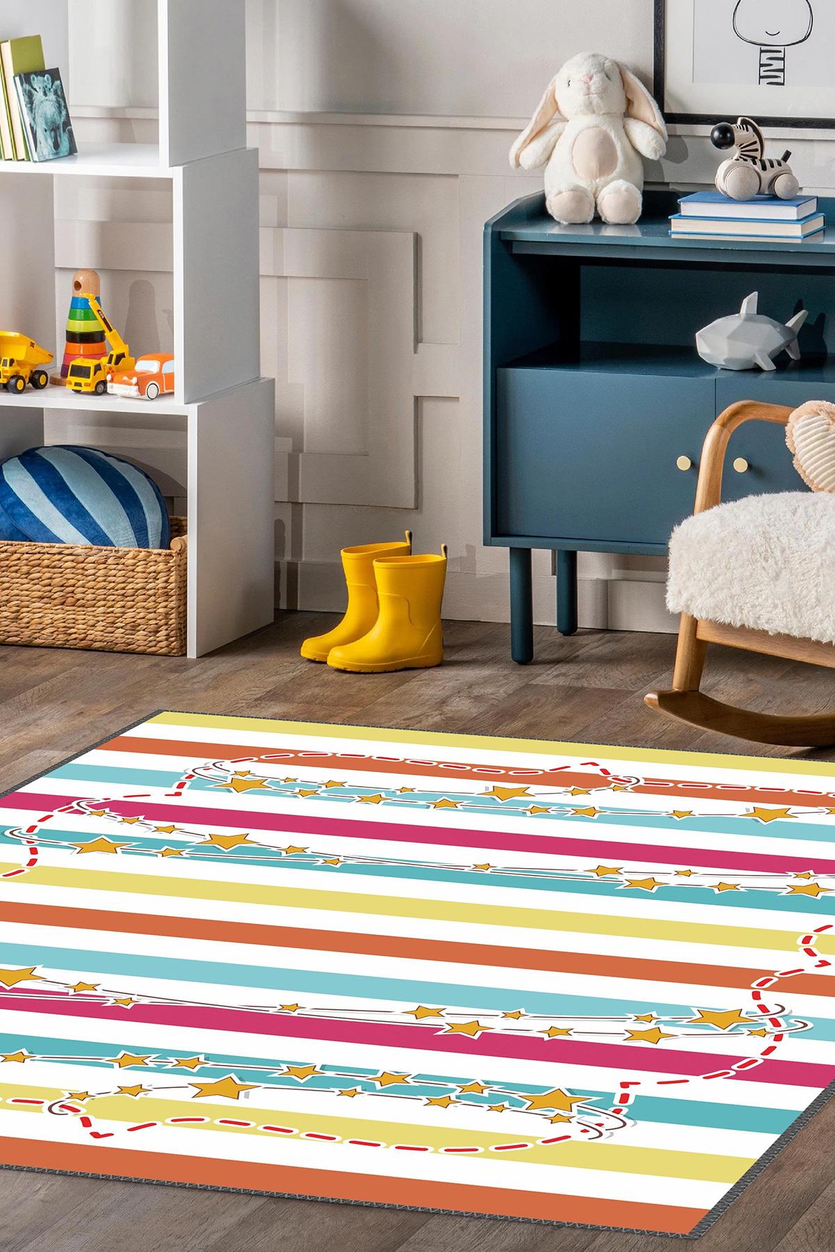 Renkli Baskılı Kaymaz Tabanlı Makinede Yıkanabilir Çocuk Halısı