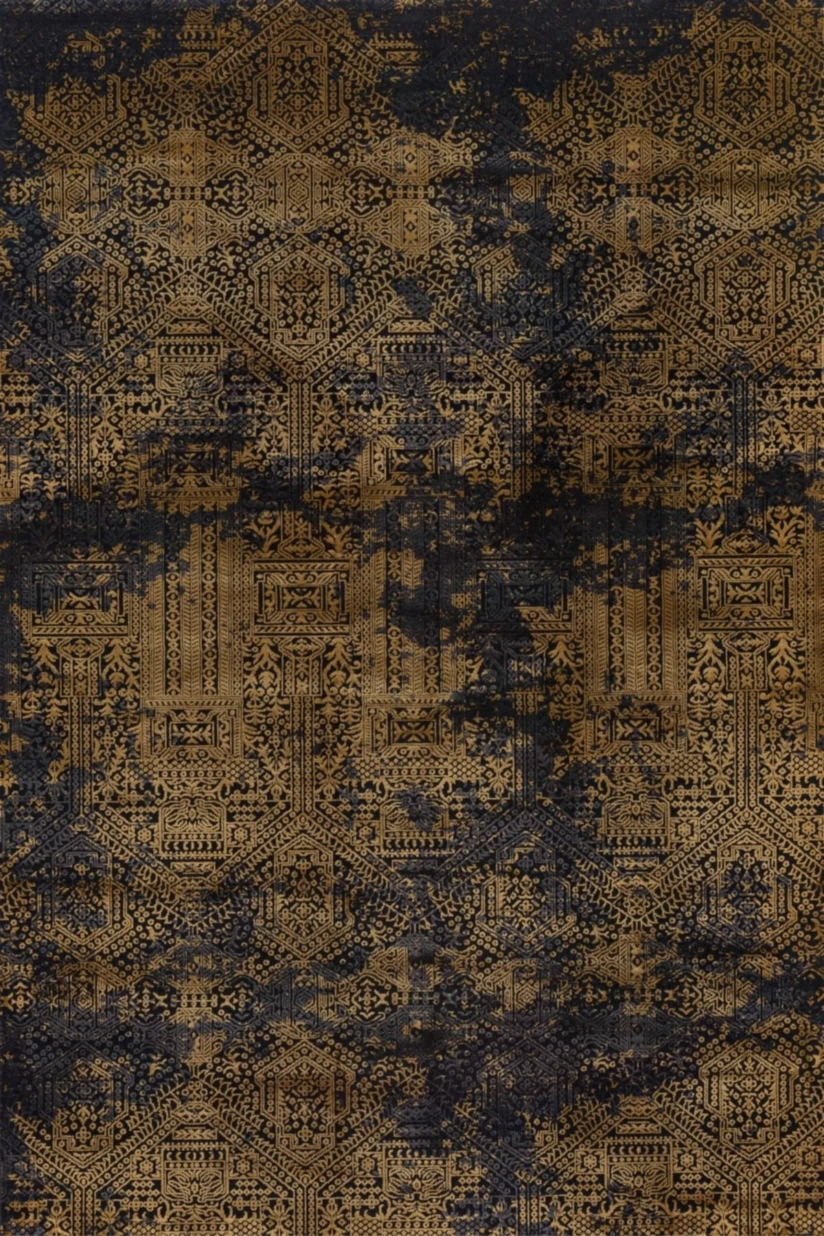 Vintrex Eskitme Desen Kaymaz Taban Salon - Oturma Odası Halısı , Yolluk (KSdot-yllk-1124gold)